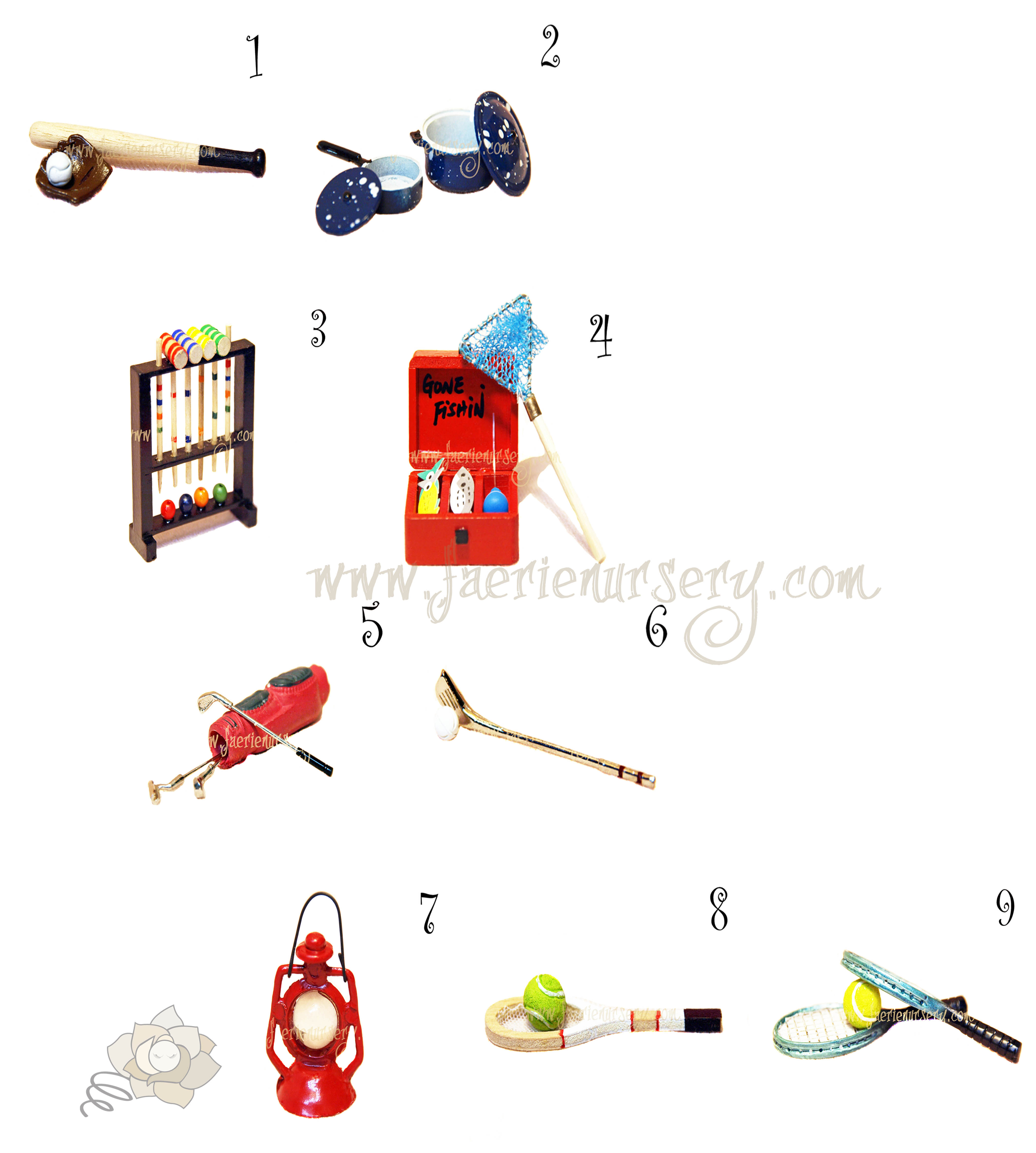 1------ IN STOCK ~~ To coin the famous quote from the duo of Abott and Costello's 'Who's on First?' Routine in the Naughty Nineties (1945), is kind of exactly how the Faeries seem to play a game of baseball. I'm not too sure if anyone, including themselves, know exactly where they are supposed to be, but they all love to do that slide into the home base, so they can all jump up and down cheering I did it, I did it. Item includes 1 metal (brown in colour) baseball ball glove, 1 wooden baseball bat and metal (white in colour) ball.